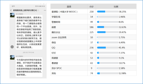 ——加强领导,周密部署。开学前期,为了充分应对疫情对教学可能带来的不利影响,公司成立由院领导牵头,各系主任及课程组长及教学专长型教师组成的“线上教学工作研讨小组”,于开课前2周起,持续向全院发布各类教学平台,资源及培训信息,统计教师授课拟使用平台及备课情况,反馈解答教师对于教学平台的各种问题,积极部署线上教学准备工作,及时开展研讨预判,统筹做好疫情防控期间在线教学工作。
