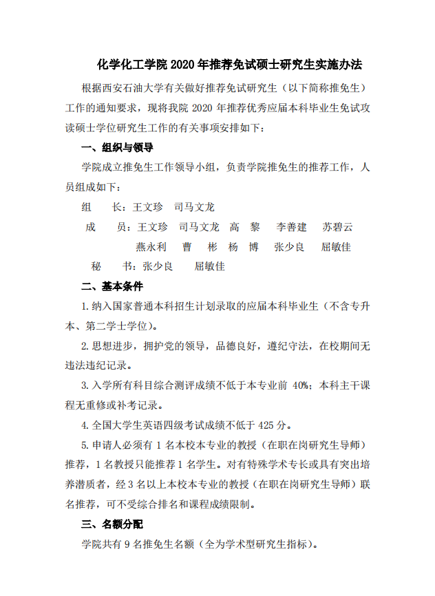 【研究生推免】suncitygroup太阳集团2020年推荐面试硕士研究生实施办法